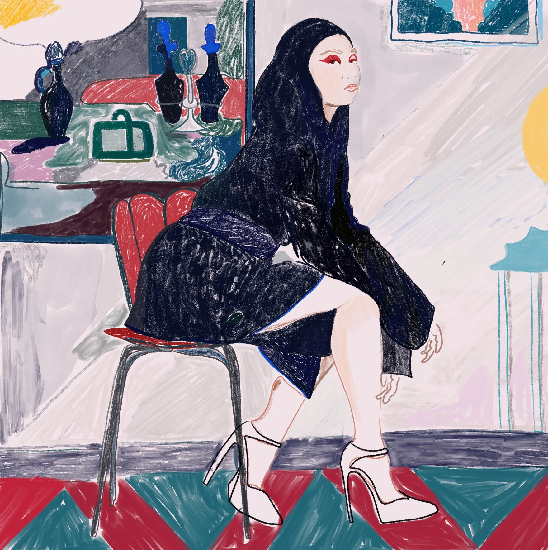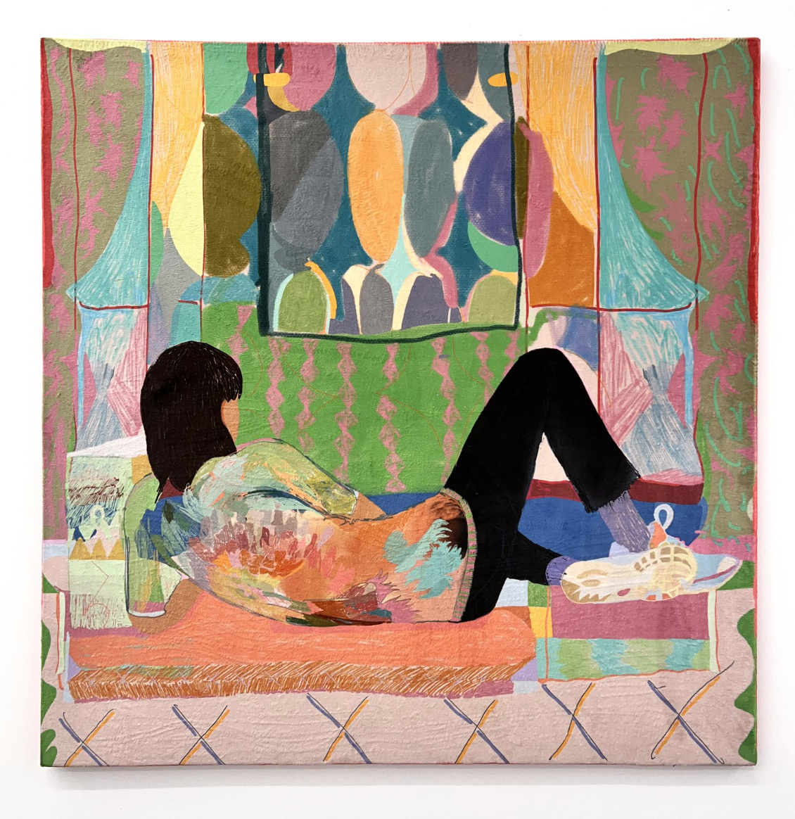Paredes constructs intricate scenes teeming with layered references, appropriations, and simulations in an ongoing dialogue with the history of images. His inspirations range widely, from Persian miniatures and Japanese prints to high fashion and contemporary pop culture, showcasing his eclectic and multidisciplinary approach. By conceptualizing the image before the object, Santiago Paredes meticulously experiments with the materiality best suited to evoke the desired mood and temperature of his representations. This exploratory mindset allows him to work across diverse media and materials, cultivating a practice that is both fluid and boundary-pushing. Paredes’ ability to traverse the realms of contemporary art and fashion gives his work a dynamic, adaptable character that welcomes interpretation while remaining distinctively his own. His art, open-ended and multilayered, invites viewers to engage with the subtle tensions and harmonies of his vivid, complex world.